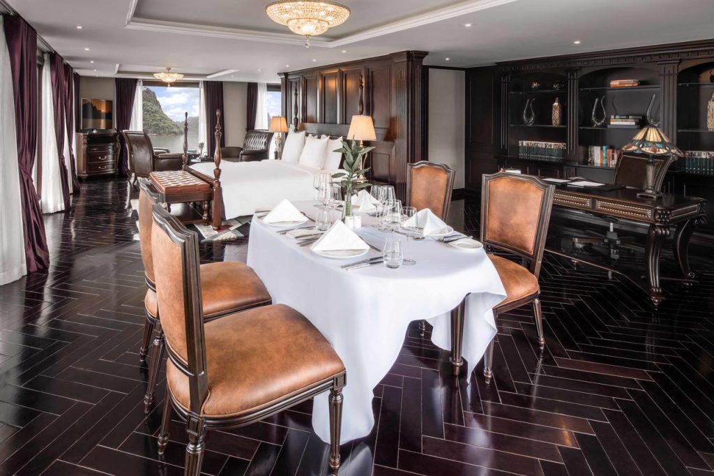 19h00: Bữa tối được phục vụ tại nhà hàng. Thưởng thức bữa tối với thực đơn Michelin tại nhà hàng của President hoặc bất kì nơi nào trên du thuyền.