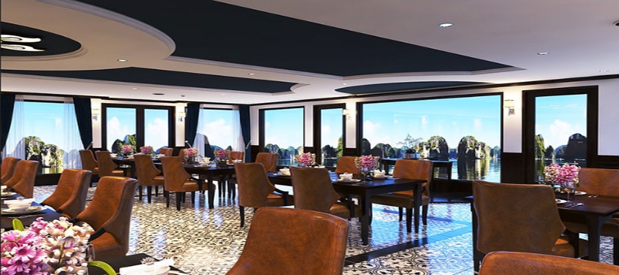 Tham gia bữa sáng nhẹ cùng thời gian tận hưởng thư giãn trong khung cảnh tuyệt vời của vịnh Lan Hạ trong khi thuyền tiếp tục đưa hành khách đi xa hơn trong hành trình của mình.